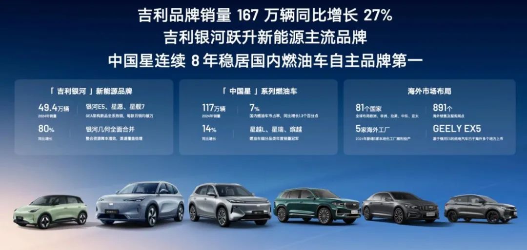 李书福的燃油车板块,由“中国星”系列主打,其2024年售出117万辆,今年势头延续。