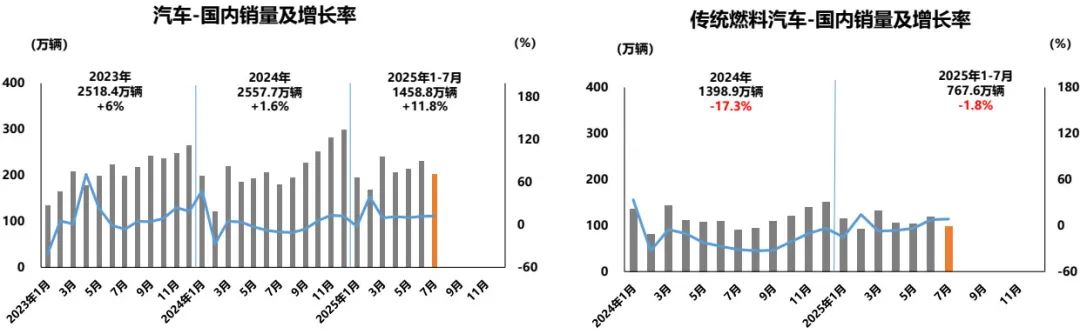 中国汽车工业协会数据显示,7月,传统燃料汽车国内销量为98.1万辆,同比增长8.4%。