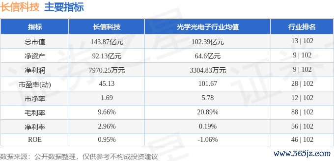 该股主要指标及行业内排名如下: