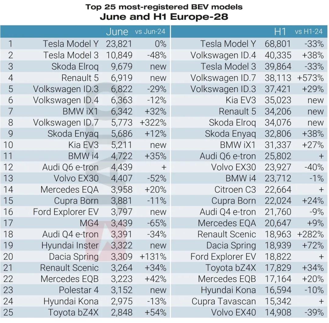 如果把时间线再拉长至今年1-7月,比亚迪和特斯拉在欧洲的市场表现差距会更加悬殊。