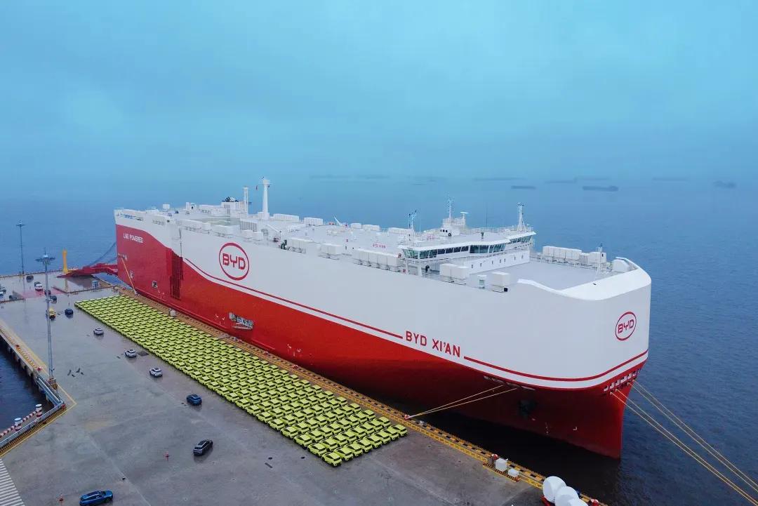 2022年,比亚迪为破解海外运力瓶颈,豪掷50亿元,宣布打造自己的出海舰队,目标是2年建造8艘滚装船,每年运力100万辆。