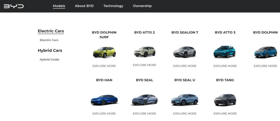 目前,比亚迪在欧洲销售的纯电动车型有Sealion 7(即海狮07)、Seal U(即(丨))、TANG(即)、HAN(即比亚迪汉)、Seal(即)、ATTO 2(即)、ATTO 3(即)、Dolphin(即);插混车型有Seal U DM-i(即)。