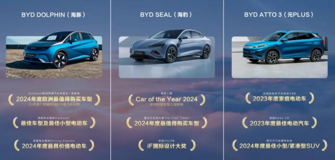 受关税政策和补贴退坡影响,尽管比亚迪在欧洲的价格并不算便宜,但良好的市场美誉度依然为品牌在欧洲市场上赢得不少支持。在2024年欧洲年度车评选中,比亚迪HAN、Seal、ATTO 3、Dolphin均在入围名单中,其中比亚迪Seal最终更杀入七强。不少欧洲汽车媒体也对比亚迪的产品给予了极高的评价。