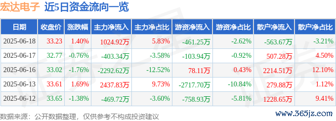 6月18日的资金流向数据方面,主力资金净流入1024.92万元,占总成交额5.83%,游资资金净流出461.25万元,占总成交额2.62%,散户资金净流出563.67万元,占总成交额3.21%。